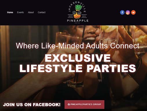 I created the complete brand identity and digital presence for Pineapple Parties, Jacksonville’s premier alternative lifestyle social network. This comprehensive project included website development, brand identity creation, event planning and coordination, custom event materials and graphics design, and ongoing social media management. The sophisticated yet welcoming design establishes trust within the community while effectively promoting exclusive gatherings and building a thriving social network across Northeast Florida.